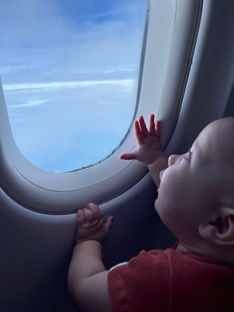 I nibble on the milk chocolate digestives we receive as a plane snack, getting crumbs on Luna’s head while she feeds.