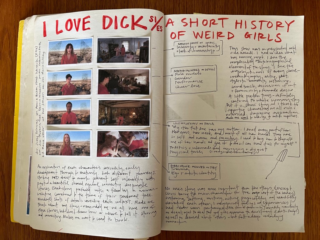So far, I like the show better than the book. Joey Soloway, creator and adaptor, takes the book as inspiration and runs to the stark desert town of Marfa, Texas. We’re exposed to a landscape beyond Chris’ mind, her whiteness, straightness, and her big, empty house in upstate New York. She is still the central figure, but we meet other people in this place at the same time, with their own relationship to self and creativity. Their stories enable a more expansive exploration of art, gender, sexuality and community. I dedicated a page of my ideas notebook to Episode 5, A Short History of Weird Girls, a self-contained work in itself, maybe my favourite episode of television of all time.