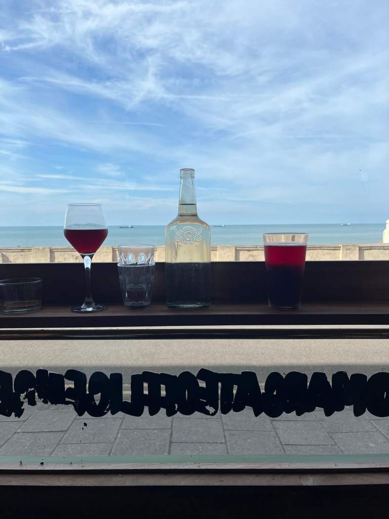 On the train home from one night in Margate, our first without Luna since she was born. As we roll past fields and trees, from coast to city, it feels like the seaside wants to stay a secret.