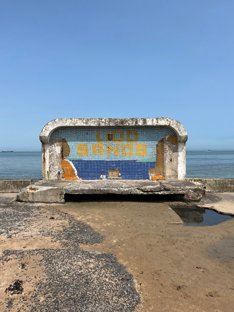 This morning we set up on a quieter beach, next to what used to be a public lido and is now an overgrown concrete shell.
