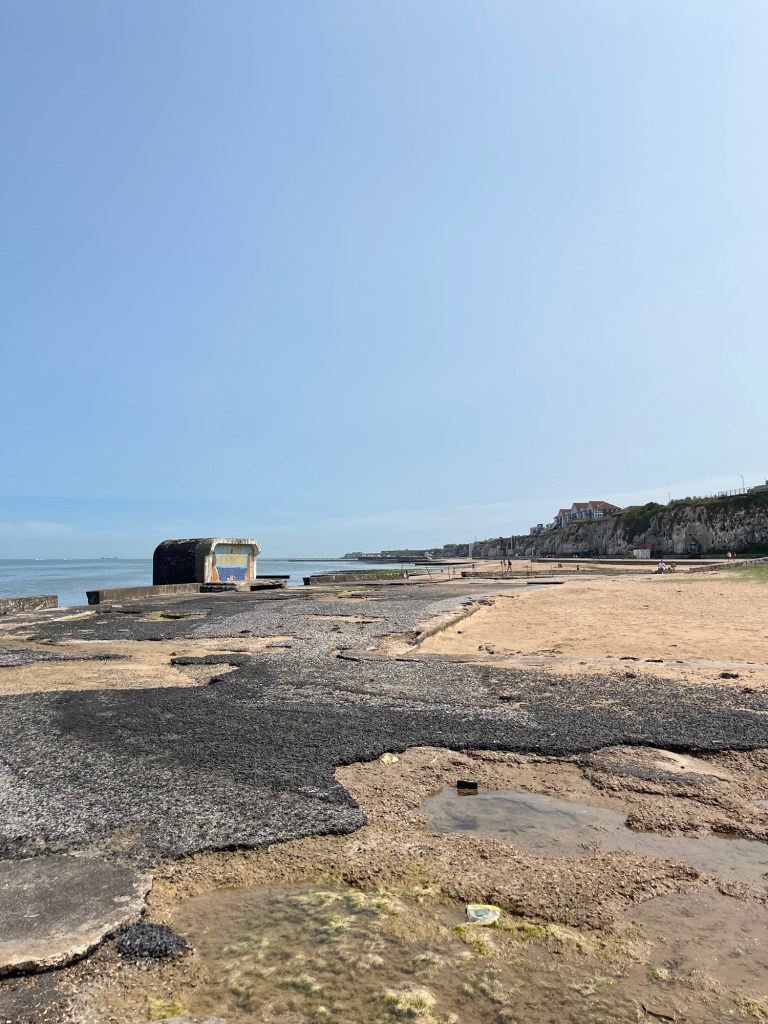 We lie on the blanket we bought when we last came to Margate in September 2020, on our first weekend away after many months of lockdown. Another momentous excursion, for a different reason.