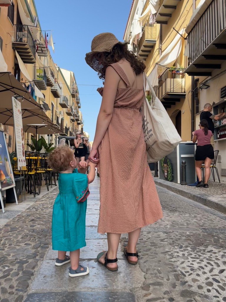 One evening, after Luna has perked up, we go on a walk. She stands between us, holding Daniel’s right and my left hand. We go at her pace, the time it takes for her little legs to cross over each other and her weight to redistribute across them. People are in motion around us, but the town invites us to go slow.