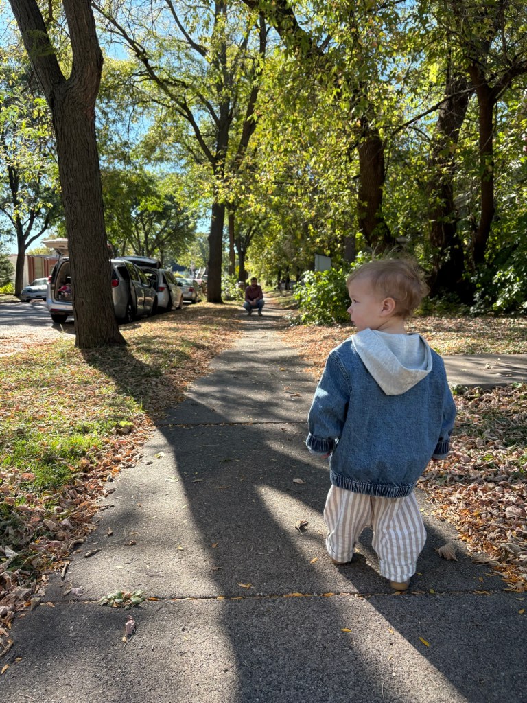 We meet a reluctant fall in Minneapolis. Blue skies and sun, framed by green leaves. There is some crunch on the ground, but most trees don’t look ready to shed yet. Yellow, orange and magenta flowers flank our walk to the park near my aunt’s house. Reunions and reintroductions go down easy with the promise of a park.