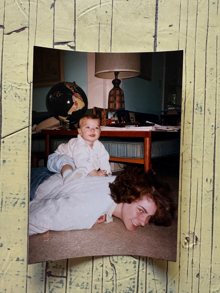 On the last day, some of us sit in the sun in my aunt’s artfully overgrown backyard along with hundreds of real life Buzzy Bees. We look through a photo album featuring every Christmas card my grandparents ever made, starting from the first one with their first born, to the last one with their three grown children starting to have children. It’s uncanny to watch the family evolve through carefully staged Christmas photo shoots. The tiny faces of my aunts and then my dad appear and slowly morph into the recognisable people that became the grown ups that shaped my life. The first Christmas card my parents made after I was born falls out of the back of the album. My first born sits next to me, points at the picture of me and says, “Luna!” That’s what I’m saying, babe.